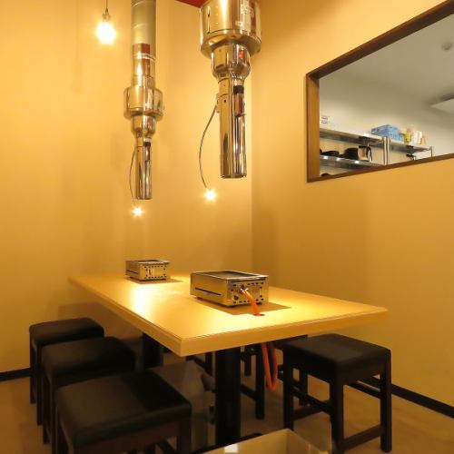 ご家族やご友人とのお食事にぴったりの4名様用テーブル席です。ゆったりとした空間で、周りを気にすることなく、美味しいお肉とおしゃべりをお楽しみいただけます。お子様連れでも安心してご利用いただけます。